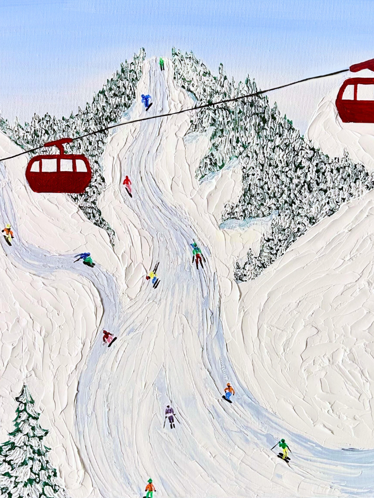 £44.00Be transported to a world of snow-dusted peaks in this alpine dream. With charming ski lifts and tiny skiers dotting the canvas, this statement textured piece celebrates the festive season with neutral sophistication.