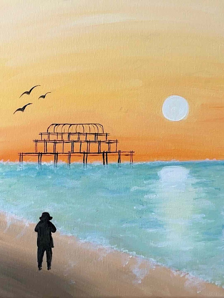 £39.00West Pier is a sunset caught between memory and sea breeze, a silhouette of Brighton’s beloved landmark standing quiet against a sky of molten gold. It’s the hush before evening, the shimmer of waves reflecting the last light, and the whisper of gulls above the tide.